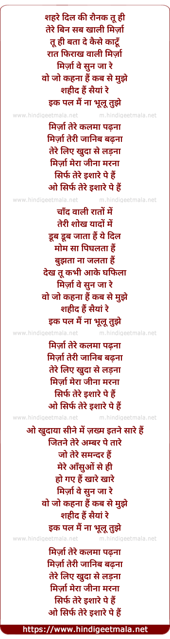 Lyrics of Mirza Ve (Female) - मिर्जा वे