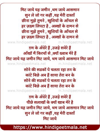 Poetic Translation - Lyrics of Mit Jaaye Ye Jamin