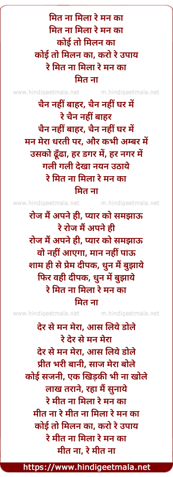 Lyrics of Mit Na Mila Re Man Ka - मित ना मिला रे मन का