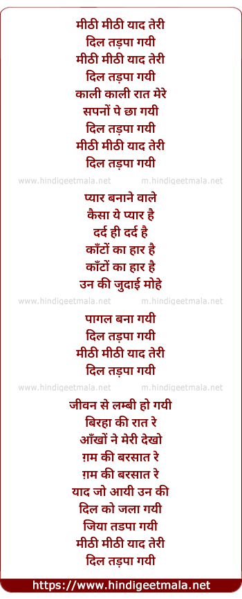 Poetic Translation - Lyrics of Mithi Mithi Yad Teri (Part - Ii) - मीठी मीठी याद तेरी