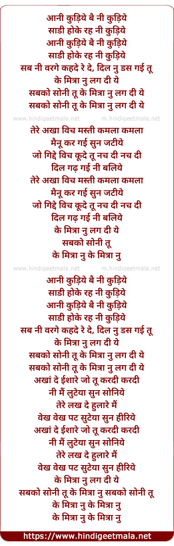 Lyrics of Mitra Nu Lag Di Ye Sabko Soni Tu - मित्रा नु लग दी ये सबको सोनी