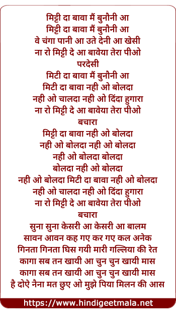 Lyrics of Mitti Da Bawa - मिट्टी दा बावा