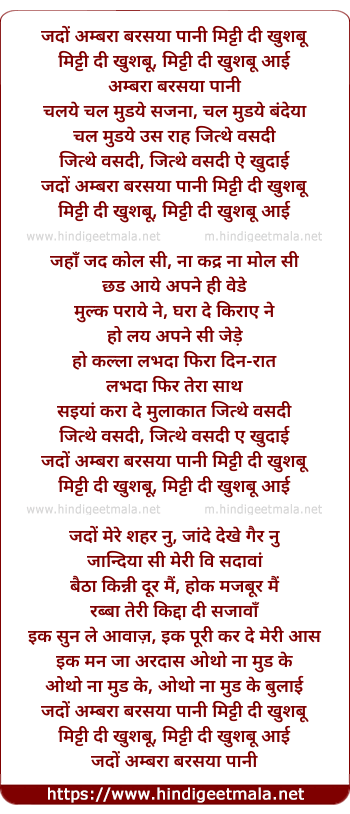 Poetic Translation - Lyrics of Mitti Di Khushboo (Mtv) - जदों अम्बरा बरसया पानी मिट्टी दी खुशबू