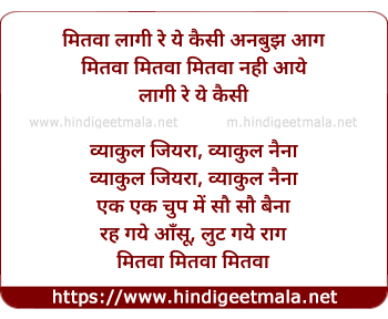 Mitwa Lagee Re Yeh Kaisee Anbujh Aag - मितवा लागी रे ये, कैसी अनबुझ आग