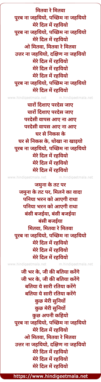 Lyrics of Mitwa Re Mitwa - मितवा रे मितवा