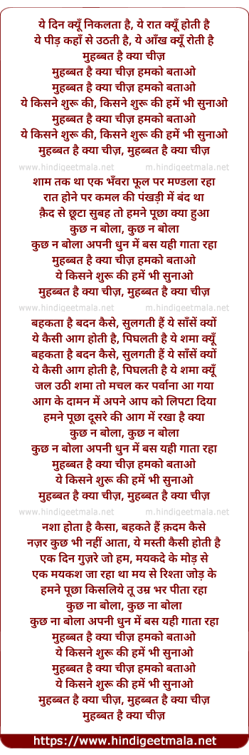 Lyrics of Mohabbat Hai Kyaa Chiz, Hamko Bataao - मोहब्बत है क्या चीज़, हमको बताओ
