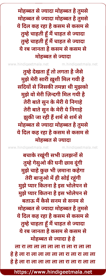 Lyrics of Mohabbat Hai Tumse - मोहब्बत है तुमसे