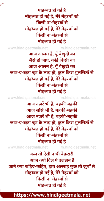Lyrics of Mohabbat Ho Gayee Hai Mere Meharaban Ko - मोहब्बत हो गई है मेरे मेहरबाँ को
