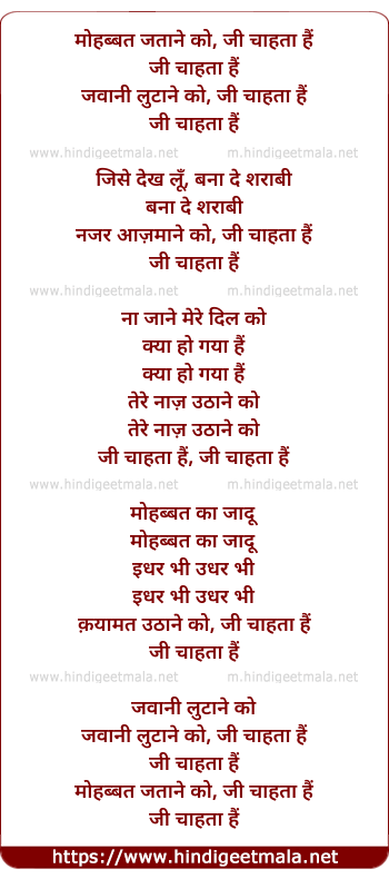 Lyrics of Mohabbat Jatane Ko Jee Chahta Hai - मोहब्बत जताने को, जी चाहता हैं