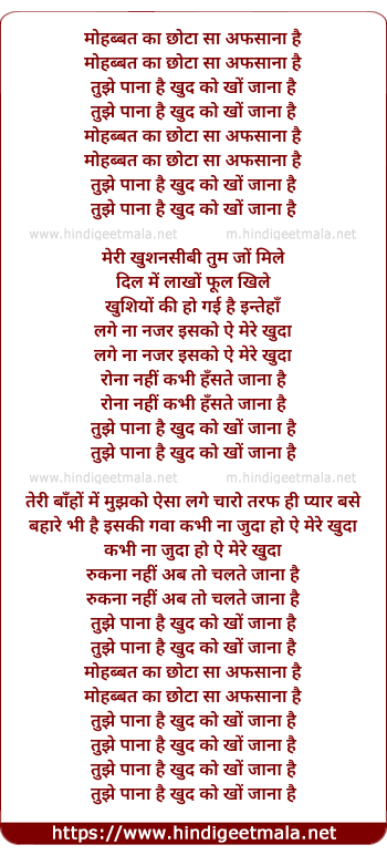 Lyrics of Mohabbat Ka Chhota Sa Aafsana - मोहब्बत का छोटा सा अफसाना
