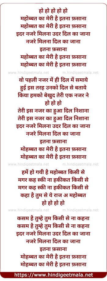 Lyrics of Mohabbat Ka Meri Hai Itna Fasana