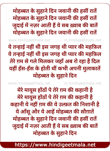Lyrics of Mohabbat Ke, Suhane Din - मोहब्बत के, सुहाने दिन