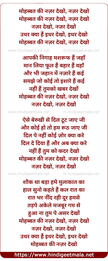 Lyrics of Mohabbat Ki Nazar Dekho - मोहब्बत की नज़र देखो