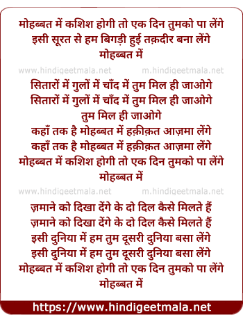 Lyrics of Mohabbat Mein Kashish Hogi To Ek Din Tumko Pa Lege - मोहब्बत में कशिश होगी तो एक दिन तुमको पा लेंगे