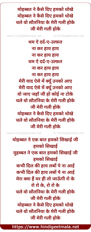 Lyrics of Mohabbat Ne Kaise Diye Humko Dhokhe - मोहब्बत ने कैसे दिए हमको धोखे