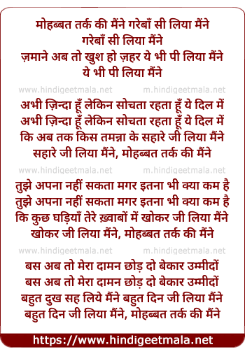 Lyrics of Mohabbat Turk Ki Maine - मुहब्बत तर्क की मैंने