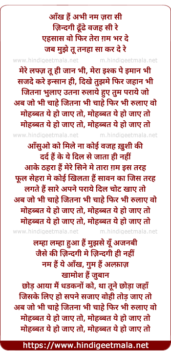 Lyrics of Mohabbat Yeh Ho Jaaye To - मोहब्बत ये हो जाये तो
