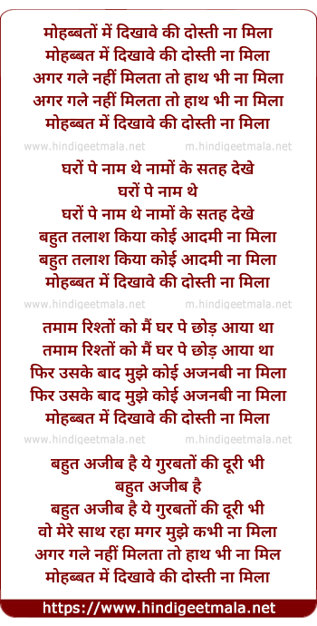Lyrics of Mohabbato Me Dikhawe Ki - मोहब्बतों में दिखावे की