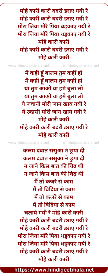 Lyrics of Mohe Kaari Kaari Badri