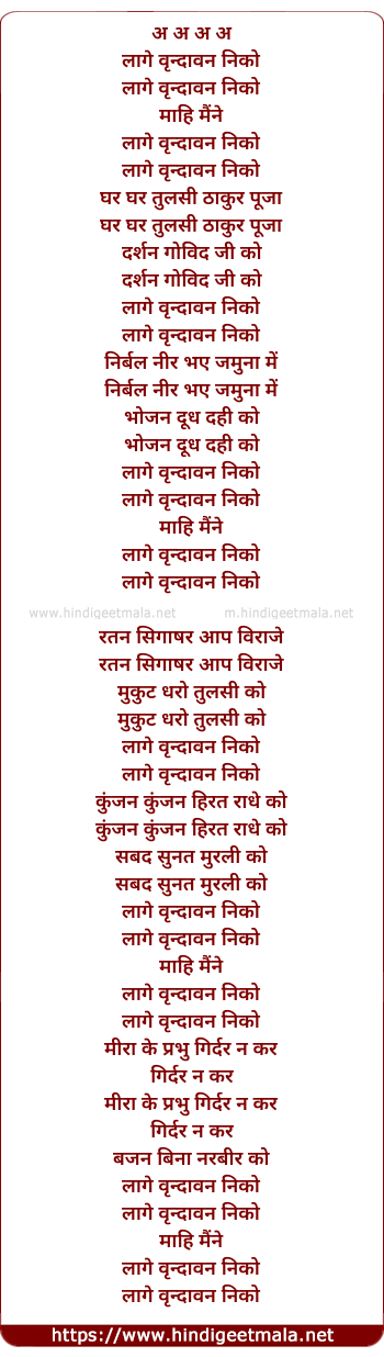 Poetic Translation - Lyrics of Mohe Lage Vrindavan Niko