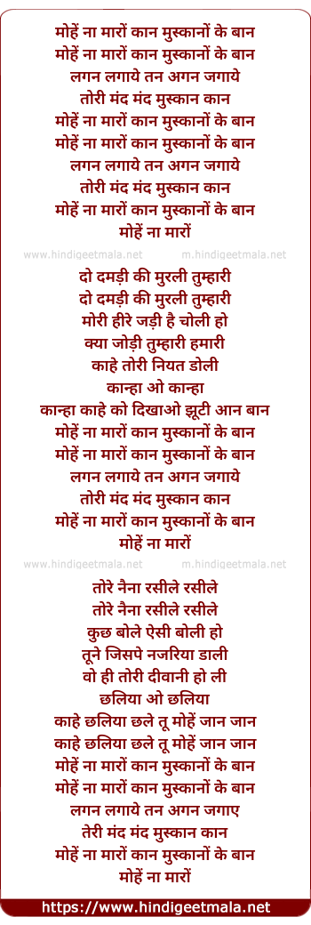 Lyrics of Mohe Na Maro - मोहें ना मारों