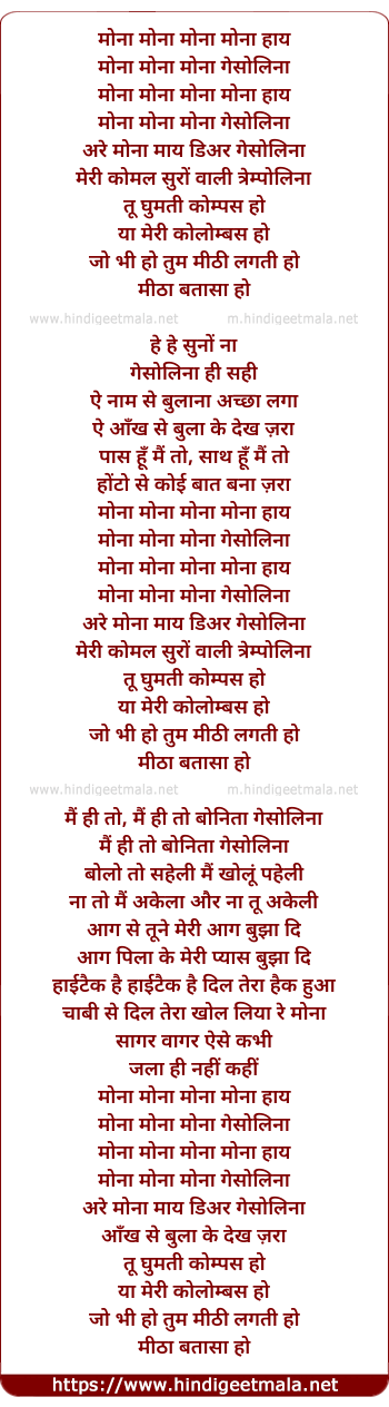 Lyrics of Mona Gasolina - मोना गासोलिना