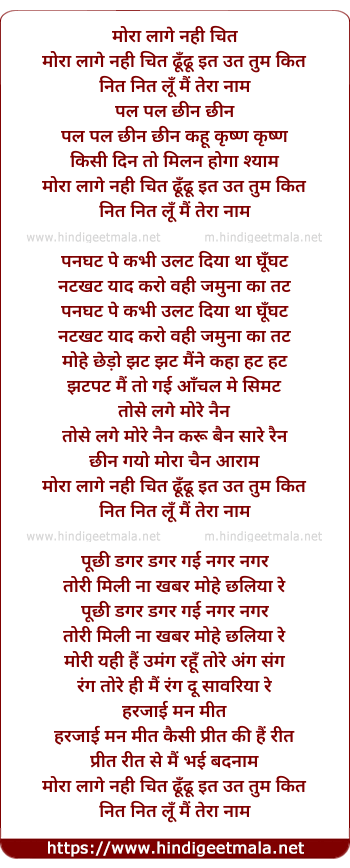 Lyrics of Mora Lage Nahi Chitt - मोरा लागे नही चित
