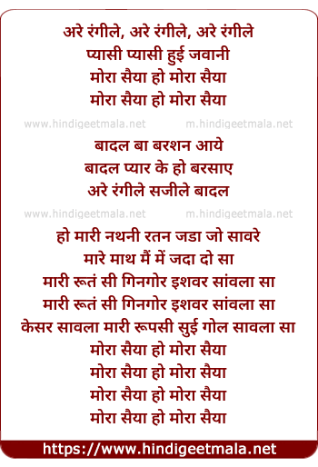 Lyrics of Mora Saiyaan - मोरा सैया