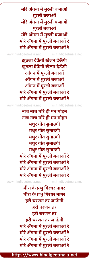 Lyrics of More Angana Me Murli Bajao - मोरे अँगना में मुरली बजाओं