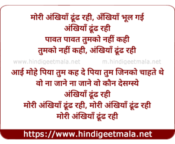 Lyrics of More Ankhiya Bhul Gayi - मोरी अँखियाँ भूल गई