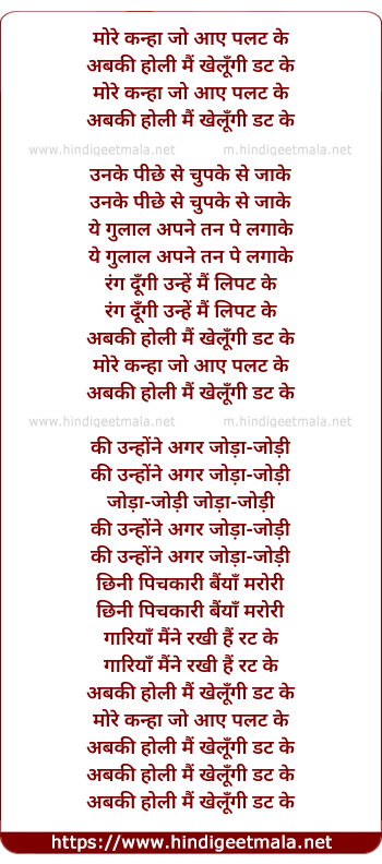 Lyrics of More Kanha Jo Aaye Palat Ke - मोरे कन्हा जो आए पलट के
