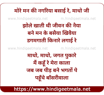 Lyrics of More Man Ki Nagariya Basai Re - मोरे मन की नगरिया बसाई रे, माधो जी
