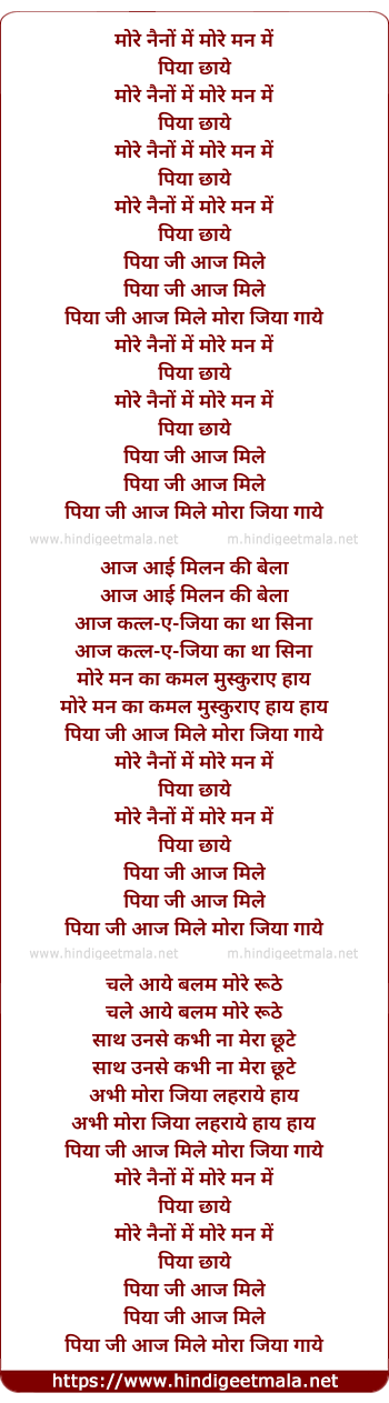Lyrics of More Naino Me More Man Me - मोरे नैनों में मोरे मन में