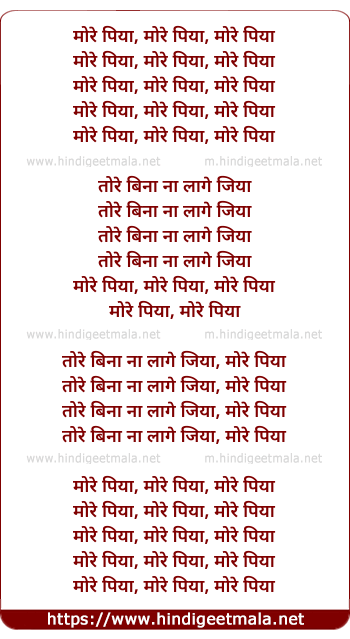 Lyrics of More Piyaa Tore Bina - मोरे पिया तोरे बिना