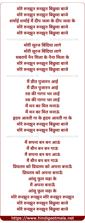 Lyrics of More Runjhun Runjhun Bichuwa Baje - मोरे रुनझुन रुनझुन बिछुवा बाजे