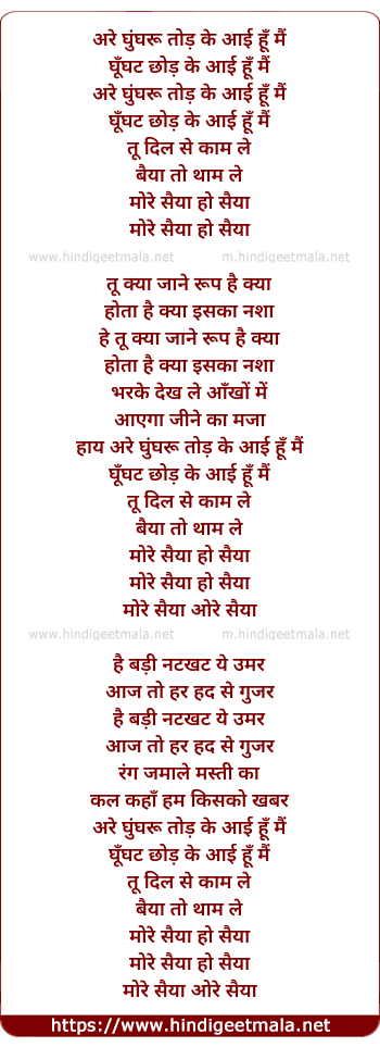 Lyrics of More Saiya O Saiya - मोरे सैया हो सैया