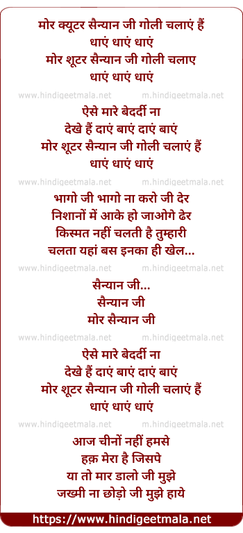Lyrics of More Shooter Saiyan Ji Goli Chalayen Hain - मोरे शूटर सैयां जी गोली चलायें हैं
