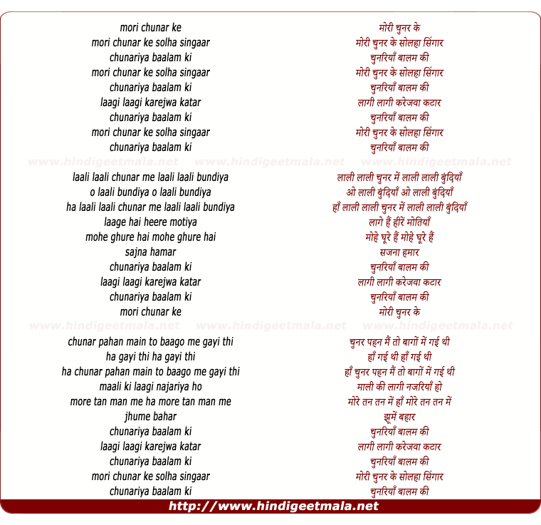 Lyrics of Mori Chunar Ke Solah - मोरी चुनर के सोलह mori chunar ke