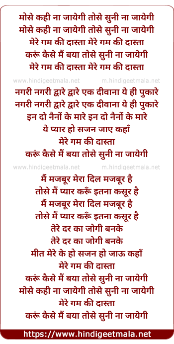 Lyrics of Mose Kahi Na Jayegi Tose Suni Na Jayegi - मोसे कही ना जायेगी तोसे सुनी ना जायेगी