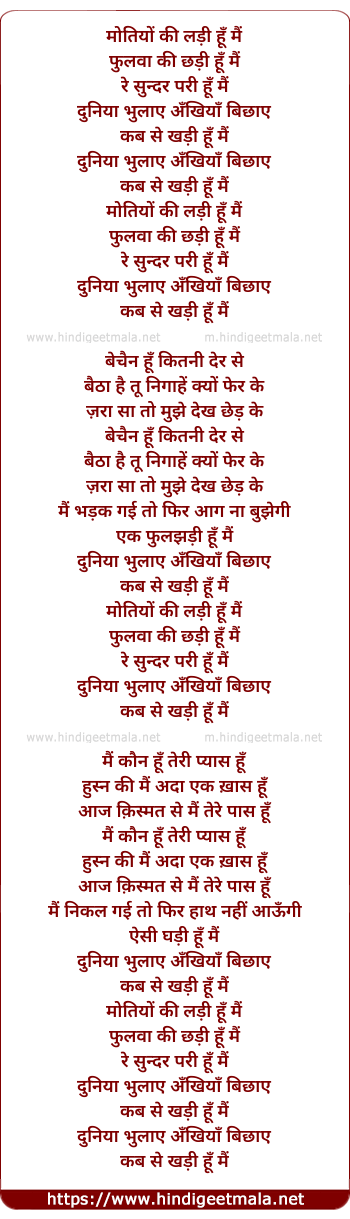 Lyrics of Motiyo Ki Ladi Hu Main - मोतियों की लड़ी हूँ मैं