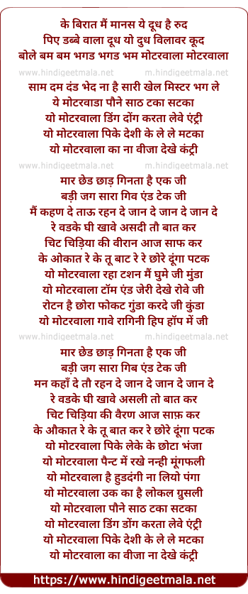 Lyrics of Motorwada - मोटरवाडा