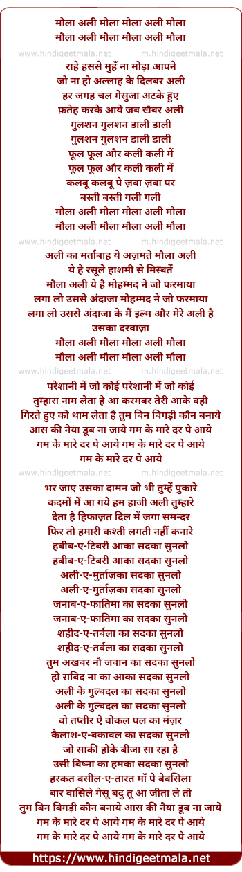 Lyrics of Moula Ali Moula - मौला अली मौला