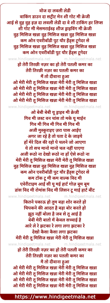 Lyrics of Meri Tu Mrs Khanna - मेरी तू मिसिज खन्ना