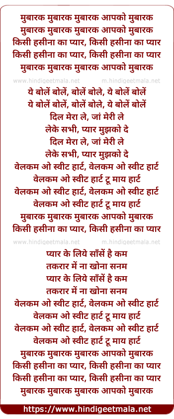 Lyrics of Mubaarak Mubaarak - मुबारक मुबारक