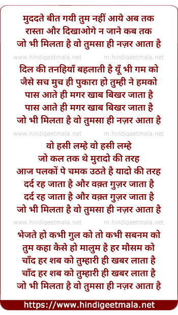 Lyrics of Muddaten Bit Gain Tum Nahin Aaye Ab Tak - मुददते बीत गयी तुम नहीं आये अब तक