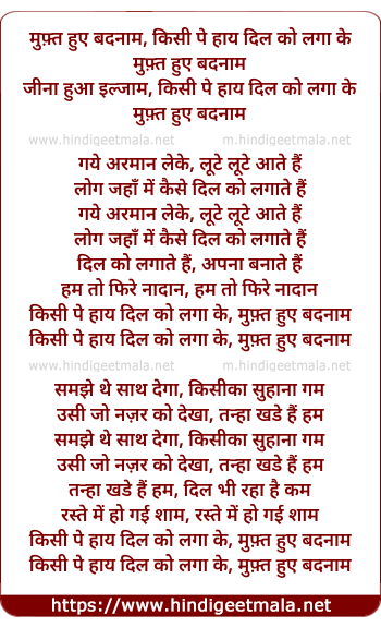 muft huye badnam, kisi pe haye dil ko lagake