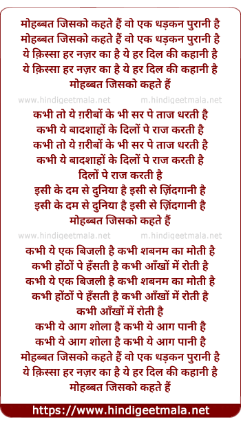 Lyrics of Muhabbat Jisko Kahate Hain - मोहब्बत जिसको कहते हैं