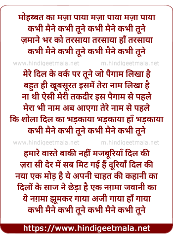Lyrics of Mohabbat Ka Maja Paya - मोहब्बत का मज़ा पाया