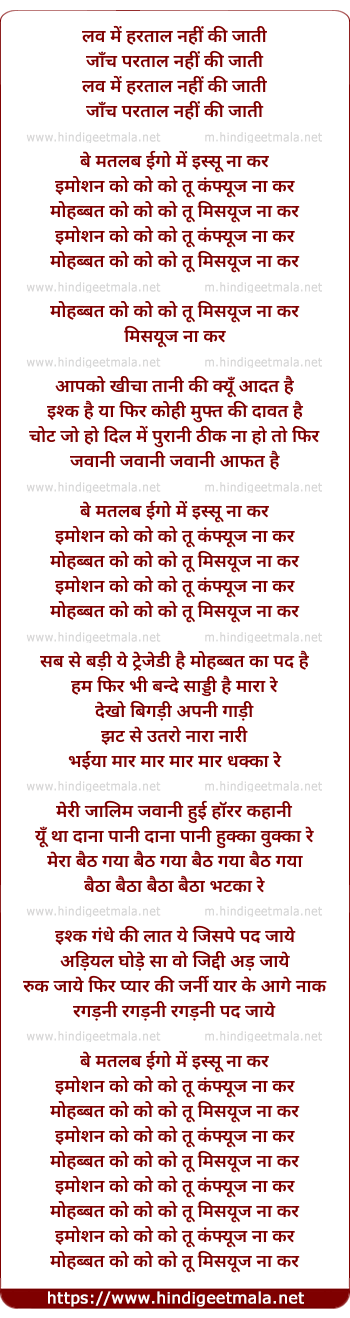Poetic Translation - Lyrics of Muhabbat Ko Tu Misuse Na Kar - मोहब्बत को तू मिसयूज ना कर