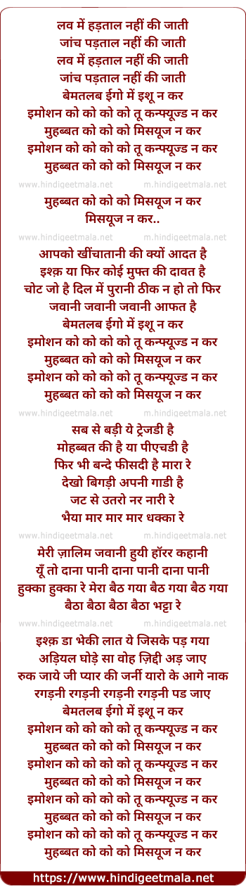 Lyrics of Muhabbat Ko Tu Misuse Naa Kar (Remix) - मुहब्बत को को को मिसयूज न कर (रिमिक्स)